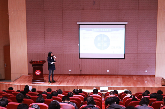 在講座上,劉老師通過列舉各高校實(shí)驗(yàn)室安全事故,讓大家認(rèn)識到實(shí)驗(yàn)室安全的重要性。她還談及了實(shí)驗(yàn)室內(nèi)可能遇到的主要危險、事故、相應(yīng)的防范要點(diǎn)及應(yīng)急手段等內(nèi)容。并發(fā)放了實(shí)驗(yàn)室安全教育手冊。