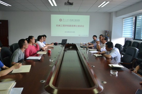 機(jī)械工程學(xué)院網(wǎng)站訊(記者 趙師娟 報(bào)道 攝影)5月18日中午,機(jī)械工程學(xué)院新進(jìn)博士座談會(huì)在機(jī)械樓518會(huì)議室召開。機(jī)械工程學(xué)院黨委書記安明剛,院長(zhǎng)李少波,副院長(zhǎng)趙津、趙勤,黨委副書記代祥社,學(xué)院辦公室老師敖雙燕、董萍,8位新進(jìn)博士參加座談會(huì)。