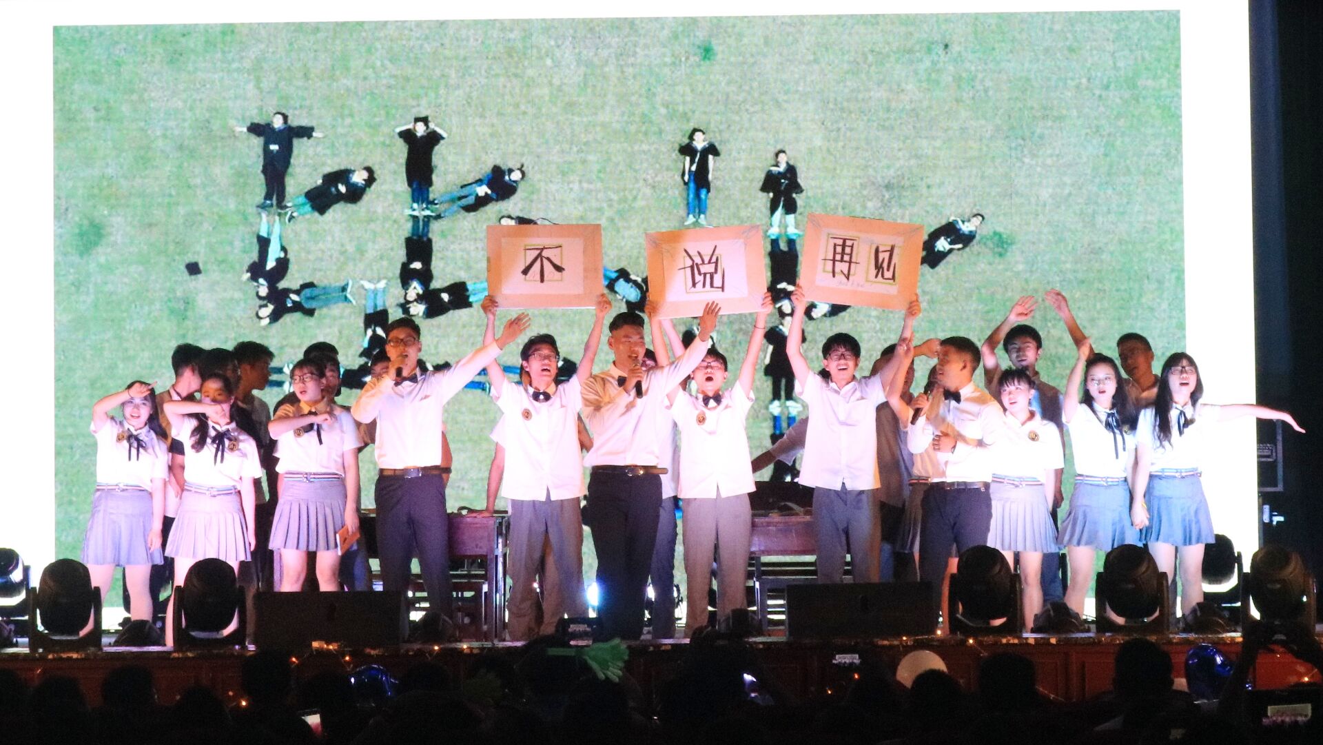 晚會分為三個篇章,內(nèi)容精彩紛呈,節(jié)目形式多樣,有歌曲、舞蹈、音樂劇等,由機(jī)械學(xué)院舞蹈隊(duì)帶來的古典舞《錦年》風(fēng)姿綽約、美輪美奐;畢業(yè)生許路佳演唱民謠《南山南》,屏幕上閃過一張張回憶的照片帶著大家細(xì)數(shù)過去四年發(fā)生的點(diǎn)點(diǎn)滴滴,感動溫馨;小德云社帶來相聲《學(xué)啞語》,生動形象的表演引起陣陣歡笑;陳馨老師演唱英文歌曲《FIGHT SONG》節(jié)奏歡快、充滿活力展現(xiàn)了不一樣的教師風(fēng)采;小品《機(jī)械四大才子》通過反差的人設(shè)幽默的語言為現(xiàn)場觀眾帶來歡樂;黃放老師、尹鍵老師聯(lián)袂獻(xiàn)唱《花溪河有我的愛》悠揚(yáng)婉轉(zhuǎn)、深情動人;晚會在機(jī)械學(xué)院新聞社帶來的音樂劇《不說再見》中落下帷幕。