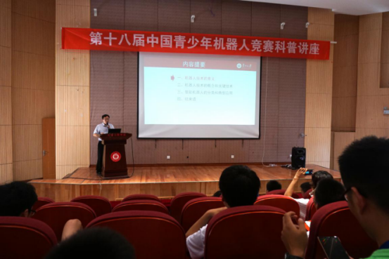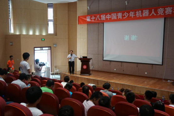 七月的筑城,萬(wàn)木蔥蘢,涼爽怡人。2018年7月22日下午2:00,第十八屆中國(guó)青少年機(jī)器人競(jìng)賽暨2018世界青少年機(jī)器人邀請(qǐng)賽進(jìn)程的第三日,貴州大學(xué)機(jī)械工程學(xué)院院長(zhǎng)李少波教授應(yīng)邀于機(jī)械工程學(xué)院報(bào)告廳為全國(guó)的參賽選手們做了題為“機(jī)器人前沿技術(shù)”的科普講座。