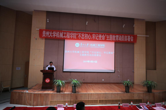 2019年9月25日,貴州大學(xué)機(jī)械工程學(xué)院黨委“不忘初心,牢記使命”主題教育部署會(huì)在機(jī)械樓圓形報(bào)告順利召開。校巡回指導(dǎo)小組四組組長(zhǎng)許道云、成員李臣宇以及學(xué)院及現(xiàn)代制造重點(diǎn)實(shí)驗(yàn)室在家處級(jí)領(lǐng)導(dǎo)干部、院黨委委員、各黨總支、黨支部委員、全體師生黨員參加了此次會(huì)議。會(huì)議由學(xué)院黨委院長(zhǎng)李少波主持。