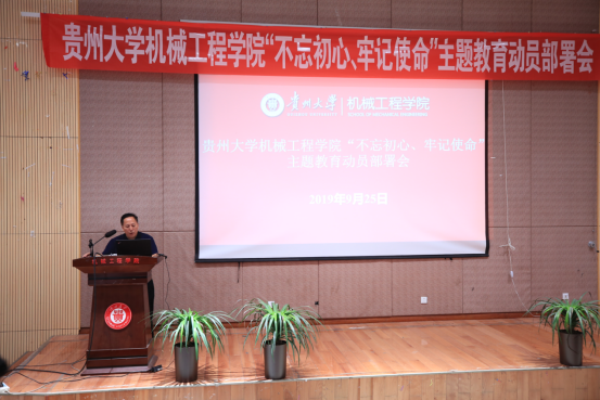 最后,院長李少波強(qiáng)調(diào),學(xué)院各黨總支、黨支部和全體師生黨員一定要遵照中央和省委的部署,認(rèn)真貫徹落實(shí)學(xué)校黨委要求,按照《中共貴州大學(xué)機(jī)械工程學(xué)院委員會(huì)“不忘初心、牢記使命”主題教育實(shí)施方案》,扎實(shí)做好主題教育工作。要認(rèn)真領(lǐng)會(huì)許道云組長和安明剛書記的講話要求,確保高標(biāo)準(zhǔn)、高質(zhì)量、高水平推進(jìn)學(xué)院主題教育的開展。
