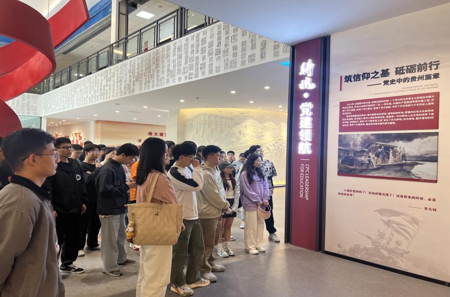 走進(jìn)序廳,大家學(xué)習(xí)了以“堅(jiān)持真理、堅(jiān)守理想,踐行初心、擔(dān)當(dāng)使命,不怕犧牲、英勇斗爭(zhēng),對(duì)黨忠誠、不負(fù)人民為內(nèi)涵的偉大建黨精神以及中國共產(chǎn)黨人精神譜系。隨后,鑄魂·黨建領(lǐng)航展廳、樹人·三全育人展廳通過圖文展陳、實(shí)物展陳、多媒體互動(dòng)查詢等方式,生動(dòng)地展現(xiàn)了中國共產(chǎn)黨的發(fā)展歷程和在黨的領(lǐng)導(dǎo)下的教育成果。