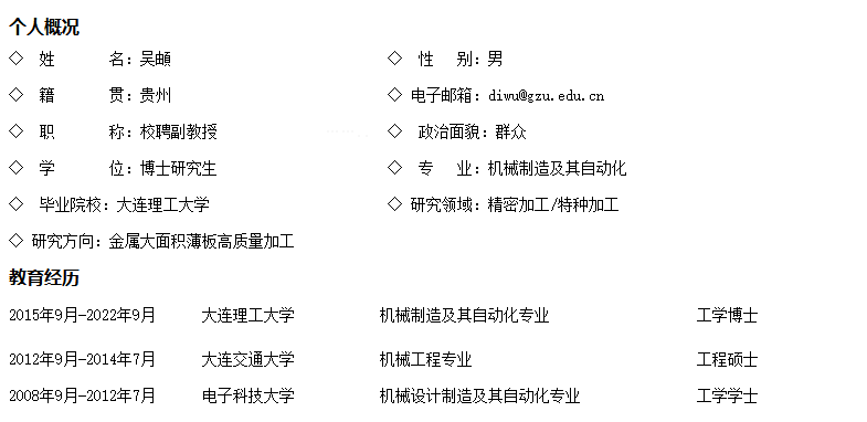 ◇ 2023年5月至今,貴州大學(xué),主持貴州大學(xué)引進(jìn)人才科研項目“純銅平面超薄飛層化學(xué)機(jī)械研磨表面面形誤差控制原理研究”(責(zé)大人基合字(2022)55號),負(fù)責(zé)人:吳頔