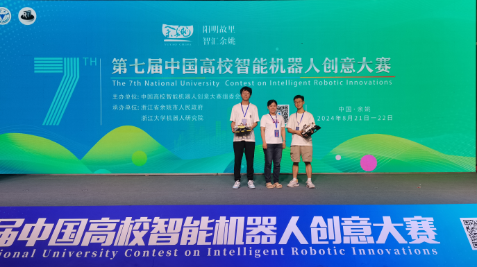 賽場(chǎng)風(fēng)云,蓄勢(shì)待發(fā)。8月21日—22日,由中國(guó)高校智能機(jī)器人大賽組委會(huì)主辦的第七屆中國(guó)高校智能機(jī)器人創(chuàng)意大賽國(guó)賽如約而至。本屆大賽共有27個(gè)省(自治區(qū)、直轄市),585所高校參與,7000余支隊(duì)伍報(bào)名參加。經(jīng)各省省賽和全國(guó)選拔賽,1347支隊(duì)伍進(jìn)入國(guó)賽,攜上千件作品于浙江省余姚市中塑國(guó)際會(huì)展中心同臺(tái)競(jìng)技。在該競(jìng)技舞臺(tái)上,我校同學(xué)在郭蕊老師和劉勇老師的指導(dǎo)下獲得國(guó)家二等獎(jiǎng)。