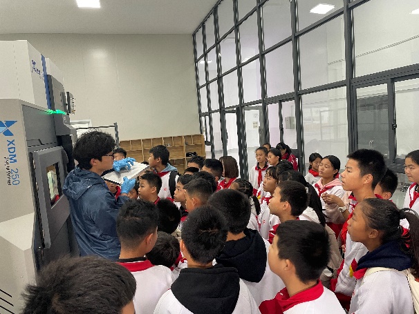 在智能制造實(shí)驗(yàn)室,學(xué)生們觀看了機(jī)器人自動(dòng)焊接的演示,了解了機(jī)器人在工業(yè)制造中的廣泛應(yīng)用和自動(dòng)化工作流程。隨后,學(xué)生們來到智能網(wǎng)聯(lián)汽車展區(qū)體驗(yàn)無人駕駛技術(shù),通過講解員的介紹初步了解了汽車互聯(lián)技術(shù)在未來生活中的重要作用。農(nóng)機(jī)實(shí)驗(yàn)室的展示進(jìn)一步擴(kuò)展了學(xué)生的視野,展示了貴州特有的“山地拓荒者”、“智能種植家”等農(nóng)機(jī)設(shè)備,生動(dòng)展示了現(xiàn)代農(nóng)業(yè)機(jī)械在不同地形中的應(yīng)用場(chǎng)景,讓學(xué)生們體會(huì)到科技對(duì)農(nóng)業(yè)的巨大推動(dòng)作用。在金屬增材制造實(shí)驗(yàn)室,學(xué)生們目睹了金屬3D打印過程,了解到3D打印技術(shù)在制造業(yè)的變革性意義。最后,在生物制造實(shí)驗(yàn)室,同學(xué)們觀看了生物3D打印的演示,從醫(yī)工交叉應(yīng)用角度,了解3D打印在生物組織和醫(yī)學(xué)工程中的廣泛應(yīng)用。