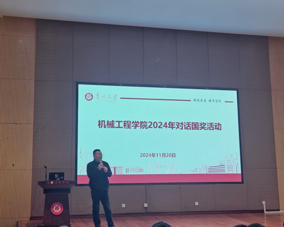 為深入學(xué)習(xí)貫徹黨的二十屆三中全會精神,加強(qiáng)研究生思想引領(lǐng)與學(xué)風(fēng)建設(shè)。貴州大學(xué)機(jī)械工程學(xué)院于20241120日中午13點(diǎn)在學(xué)院圓形報(bào)告廳舉辦了2024年研究生“對話國獎(jiǎng)”主題分享會。分享會由研究生科田森老師主持,機(jī)械學(xué)院2023級、2024級全體研究生參與活動。