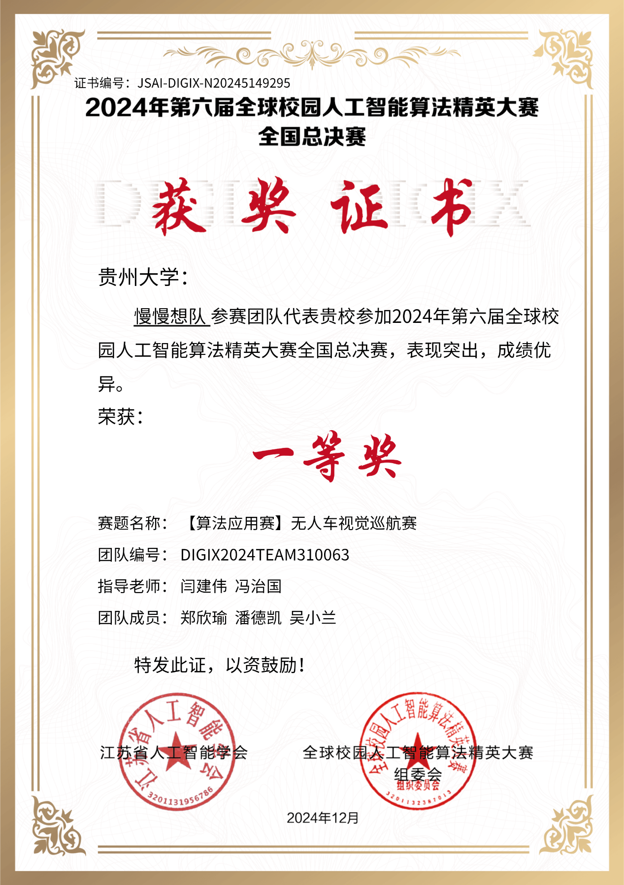 此次全國總決賽貴州大學(xué)派出由機(jī)械工程學(xué)院閆建偉、馮治國等老師指導(dǎo)的9支隊(duì)伍參加算法應(yīng)用賽無人車任務(wù)挑戰(zhàn)賽、算法應(yīng)用賽無人車視覺巡航賽、算法創(chuàng)新賽人工智能+新農(nóng)科等賽項(xiàng),經(jīng)過激烈角逐,共斬獲了2項(xiàng)國賽一等獎、3項(xiàng)國賽二等獎、1項(xiàng)國賽三等獎,這是繼參加第二十六屆中國機(jī)器人及人工智能大賽后再次獲得國賽一等獎2項(xiàng),再次創(chuàng)造了貴州大學(xué)參加該比賽的歷史最好成績。