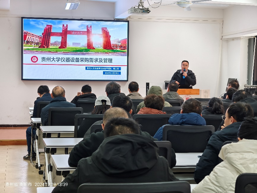 20241219日下午,機(jī)械工程學(xué)院邀請我校實驗室與設(shè)備管理處賴力斌副處長、何霽峰老師一行蒞臨我院指導(dǎo)工作,開展“貴州大學(xué)儀器設(shè)備采購需求及管理”專題培訓(xùn),會議由學(xué)院黨委書記滕召華主持,我院全體教職工參加。