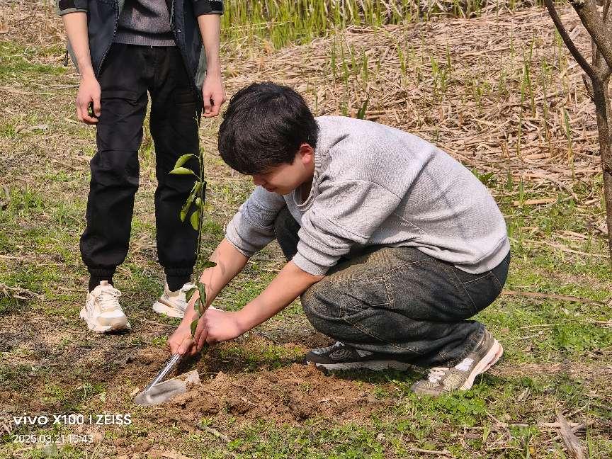 “植”此青綠,共“樹(shù)”未來(lái)。同學(xué)們協(xié)同配合,栽苗、培土、澆水,每一道工序都一絲不茍。濕潤(rùn)的泥香混著青草氣息漫溢開(kāi)來(lái),種樹(shù)如育人,根系要深、枝干要直,就像精密零件組成完整機(jī)器,每棵樹(shù)都是生態(tài)系統(tǒng)的“關(guān)鍵部件”,這次活動(dòng)讓同學(xué)們體會(huì)到專(zhuān)業(yè)學(xué)習(xí)與生態(tài)保護(hù)的深層聯(lián)系。