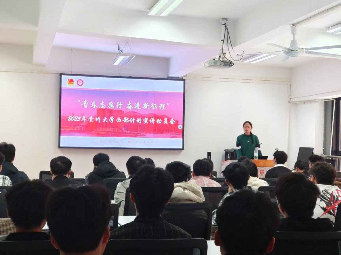 為深入貫徹國家“大學生志愿服務(wù)西部計劃”政策號召,引導青年學子投身西部基層建設(shè),學院團委于4月29日在327室舉辦了2025年大學生志愿服務(wù)西部計劃專題宣講會。通過政策解讀、經(jīng)驗分享與互動答疑相結(jié)合的形式,為學生深度解讀西部計劃志愿服務(wù)政策。