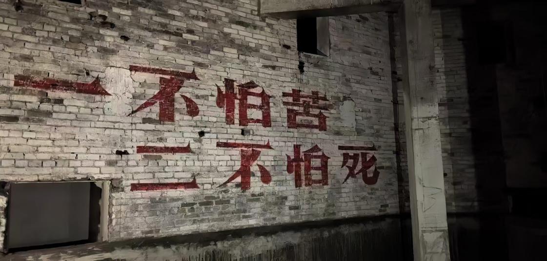 而今處于新時(shí)代的我們,已不見先輩們洞中燈火下?lián)]汗如雨、艱辛勞作的身影,但洞壁上一行行斑駁卻遒勁的紅色標(biāo)語,卻依舊如炬火般灼亮,似號(hào)角般回響,在歲月深處默默訴說著那段滾燙的過往。