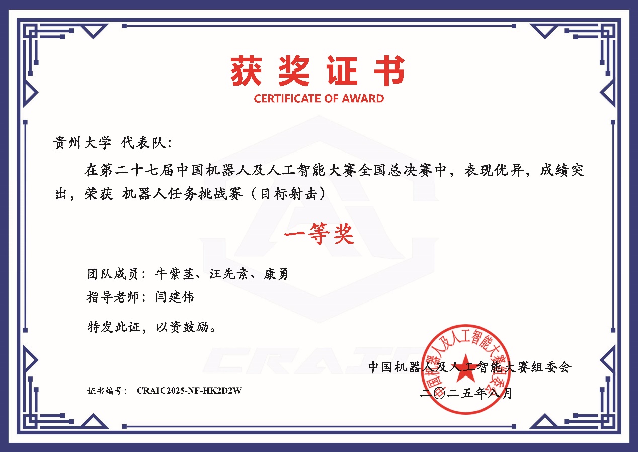 機(jī)械工程學(xué)院各參賽隊(duì)伍成員和指導(dǎo)老師經(jīng)歷了長達(dá)半年多的辛苦備賽,經(jīng)過校、省、全國總決賽層層選拔和激烈角逐最終在202583日到822日舉行的27CRAIC中國機(jī)器人及人工智能大賽全國總決賽中取得國賽一等獎(jiǎng)3項(xiàng)、國賽二等獎(jiǎng)8項(xiàng)、國賽三等獎(jiǎng)3項(xiàng),再創(chuàng)貴州大學(xué)參加該比賽國賽一等獎(jiǎng)數(shù)量和獲獎(jiǎng)總數(shù)的歷史新高。值得一提的是微型無人機(jī)賽道今年是首次參賽,由管彥銀擔(dān)任隊(duì)長的貴州大學(xué)小芯藝藝代表隊(duì)奪得貴州大學(xué)在此賽道中的首個(gè)國賽一等獎(jiǎng)的好成績。